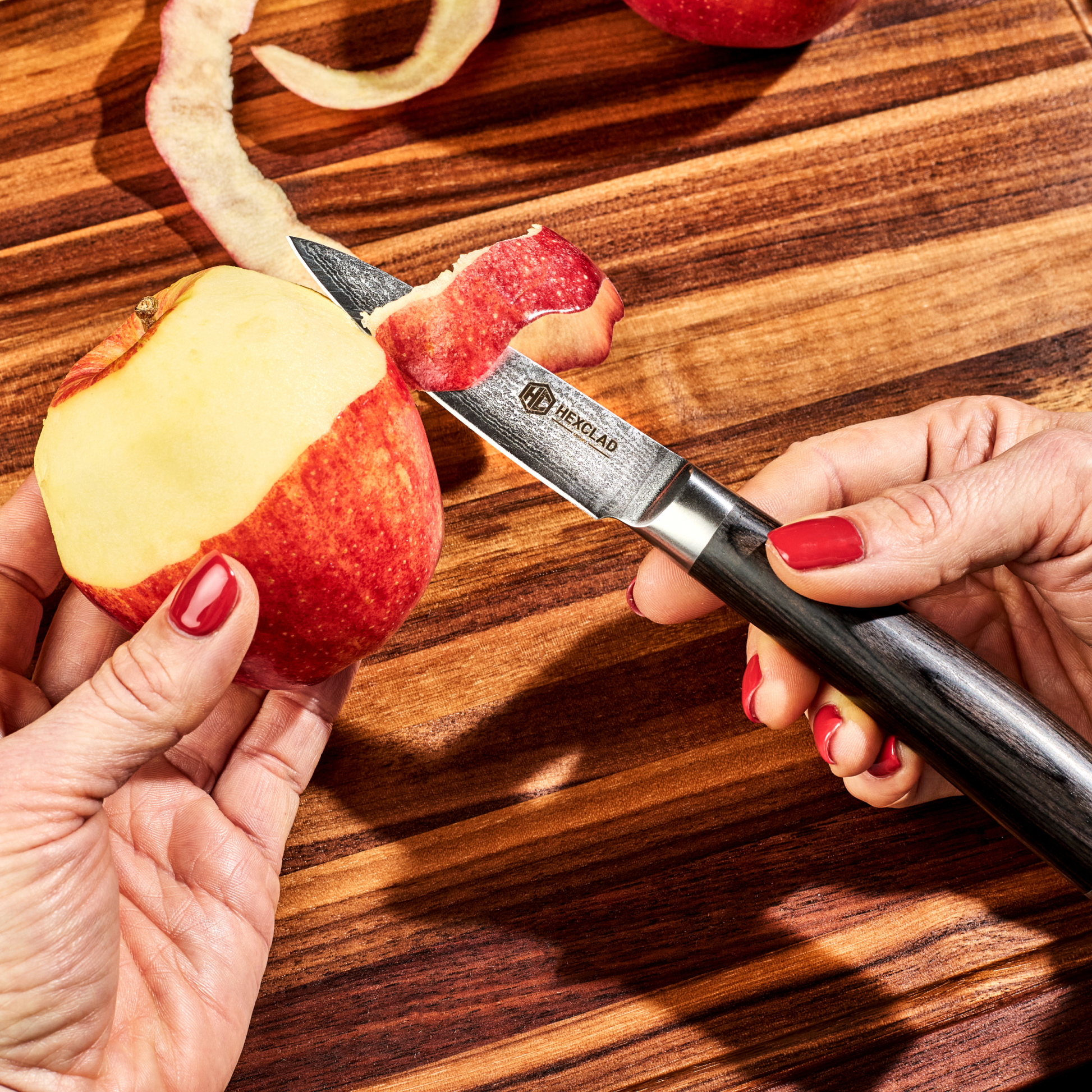 Our new espresso-colored Damascus steel knives are as striking in a modern kitchen as a rustic one, and we cut no corners in making them. Think: 67 layers of Damascus steel. Twelve degree blade sharpness. Rockwell ratings of 60 or higher. The knives themselves boast ergonomically designed pakkawood handles that have been treated with anti-shrinking technology, for added durability. A magnetic walnut block helps protect blades and keep them sharp while conserving precious counter space. This essential knife set will both speed up your prep work and level up your cooking prowess.