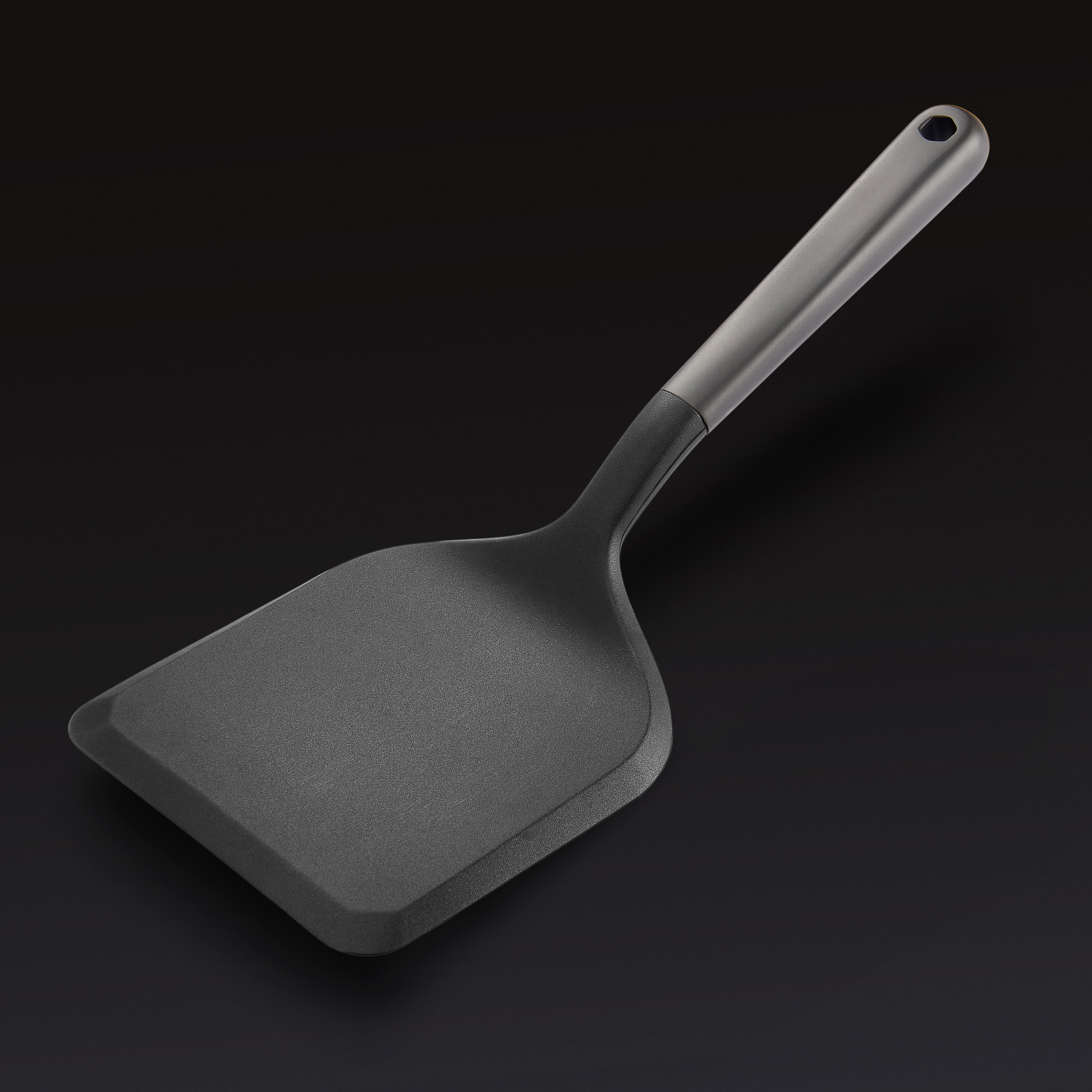 - Wide Turner: Ideal for burgers or pancakes; flexible silicone head easily slides under food, making flipping a cinch.
