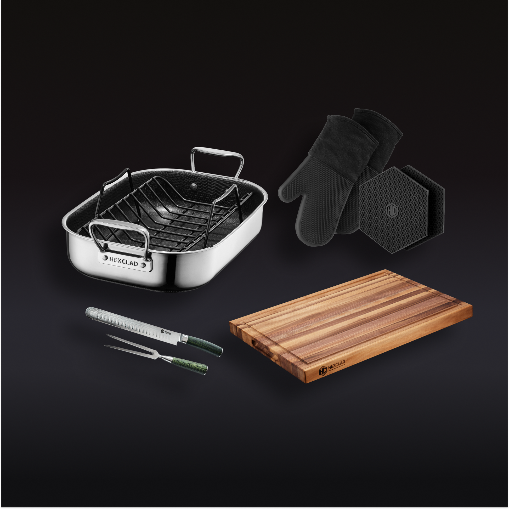 Attention, those who love to roast: Your T Day turkey deserves more than that beat-up old thrifted pan. Your holiday roast needs a rack, so it crisps evenly on all sides. We¡¯ve got the roasting pan you need, the hot mitts to keep you safe, and the trivets, cutting board and carving set to make it all look spectacular.