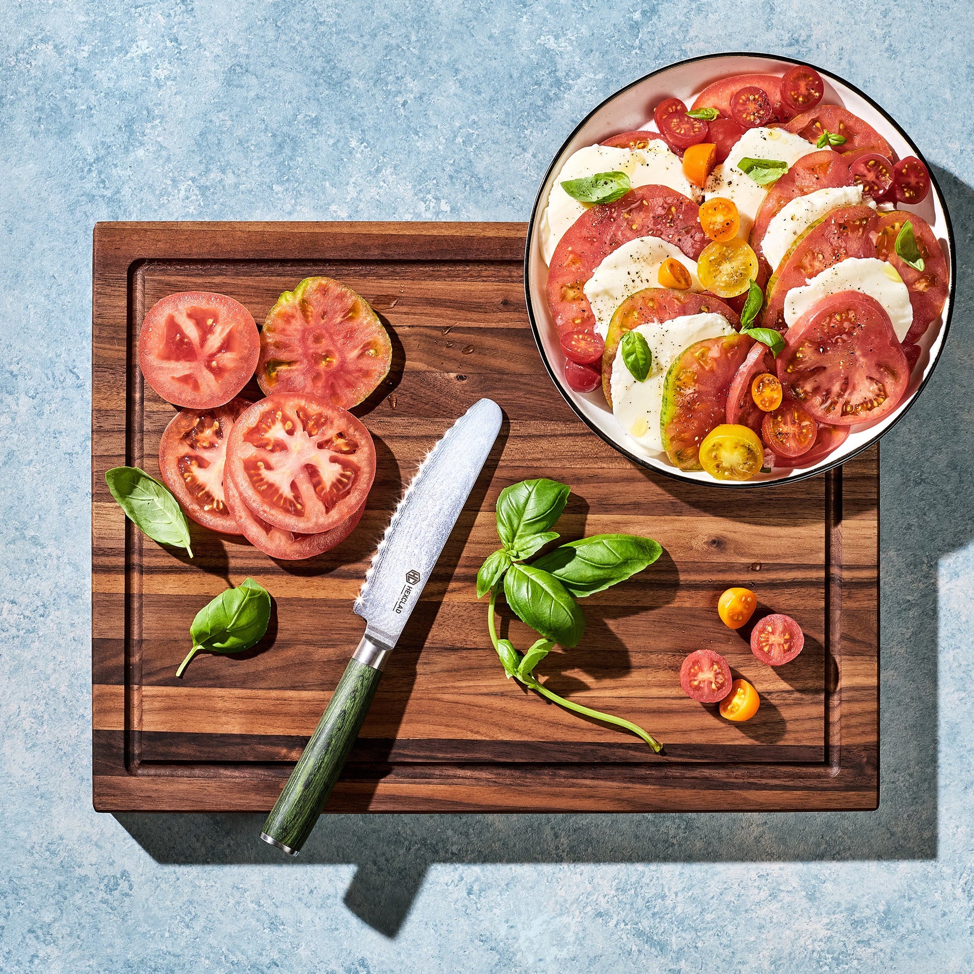 Our double-sided Walnut Cutting Boards, featuring stunning contrasting grains, have exactly what you want in a wooden cutting board. Known for its exceptional density and durability, walnut can withstand the impact of cutting tools¨Cand resist deep knife scratches¨Cbetter than softer woods. Walnut¡¯s natural antimicrobial properties can help inhibit the growth of bacteria, too, which is crucial for cutting boards that come into contact with raw meat and produce. Plus, our Walnut Cutting Boards will (when properly cared for) outlast their plastic counterparts. And best of all, they¡¯re now even more of a workhorse in your kitchen and on your table: One side features a juice groove to keep juice and jus from running all over your counter, while a flat side provides a broad chopping surface. Handles make lifting a cinch, so the board can also double as a sleek charcuterie serving piece.?
